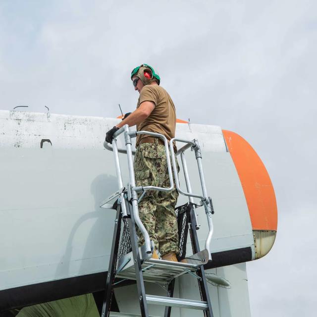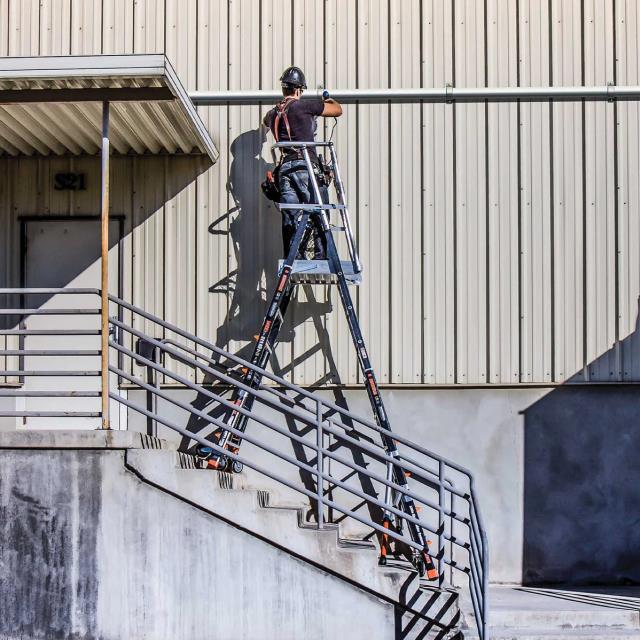 LADDER 5'-9' ADJUSTABLE PLATFORM W/CAGE
